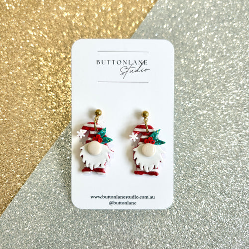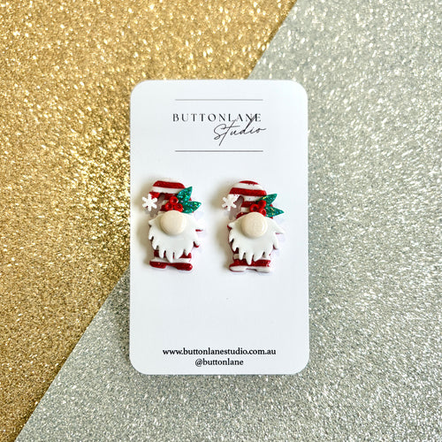 Christmas red glitter gnomes stud